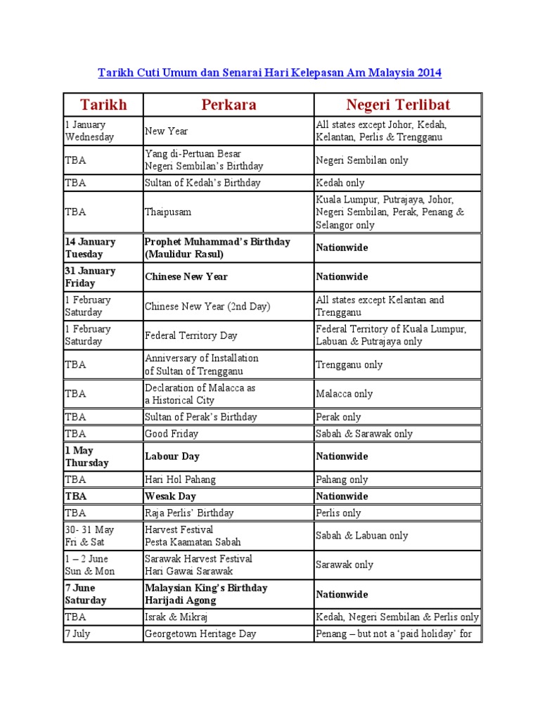 Tarikh Cuti Umum Dan Senarai Hari Kelepasan Am Malaysia Pdf Strait Of Malacca Malaysia